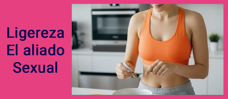 La excitación requiere un flujo sanguíneo masivo hacia los genitales. La digestión de una comida pesada también requiere una gran cantidad de sangre en el sistema digestivo. Tu cuerpo no puede priorizar ambas cosas al mismo tiempo. Cuando estás lleno, te sientes lento, tu respiración es más corta y tu respuesta física se apaga. La ligereza no es solo estética; es funcionalidad. Comer ligero te permite moverte mejor, respirar mejor y, lo más importante, sentir más.